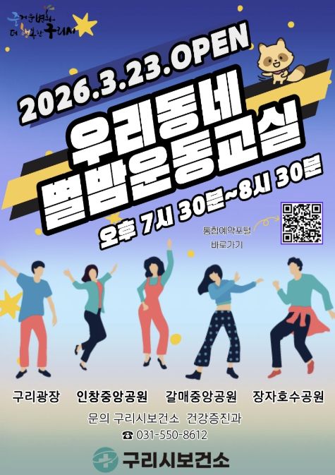백경현 구리시장은 “저녁 시간대 누구나 부담 없이 참여할 수 있는 프로그램을 통해 시민들의 신체활동을 활성화하고 건강한 지역사회 조성에 이바지하겠다”라며 “앞으로도 시민 건강 증진을 위한 다양한 프로그램을 지속적으로 운영해 나가겠다”라고 말했다.
