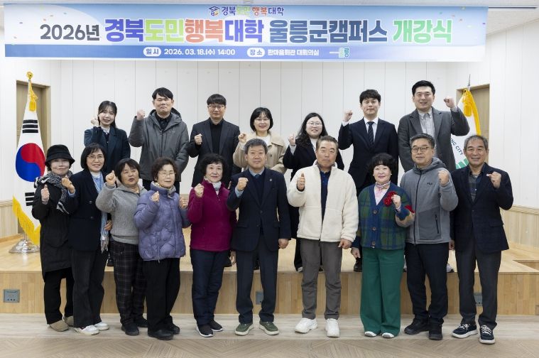 한방통신사 신유철기자 기자 | 울릉군은 18일 오후 2시 울릉군청 4층 회의실에서 남한권 울릉군수(학장)를 비롯해 수강생과 관계자 등 20여 명이 참석한 가운데 ‘2026년 경북도민행복대학 울릉군캠퍼스 개강식’을 개최했다.