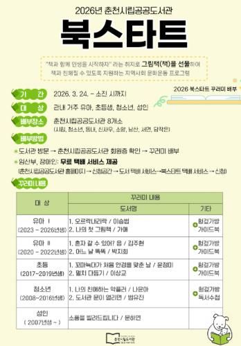 한방통신사 양호선기자 기자 | 춘천시립도서관이 오는 24일부터 연령별 북스타트 꾸러미를 배부한다.