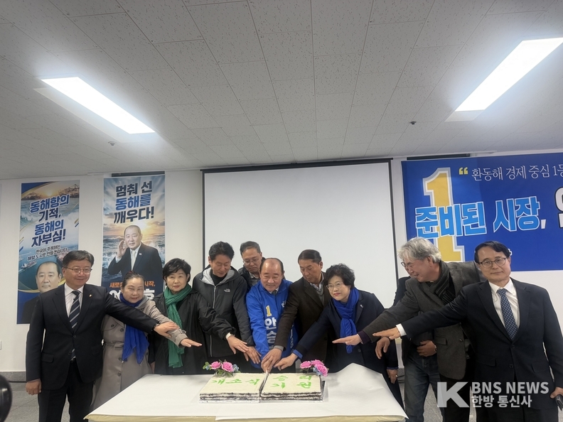 더불어민주당 안승호 동해시장 예비후보가 24일, 동해시 천곡동에 마련된 선거사무소에서 개소식을 열고 본격적인 세 과시에 나섰다. 이날 개소식에는 동해시민과 당원 등 수백 명이 운집해 안 후보의 필승을 기원하며 뜨거운 열기를 뿜어냈다.