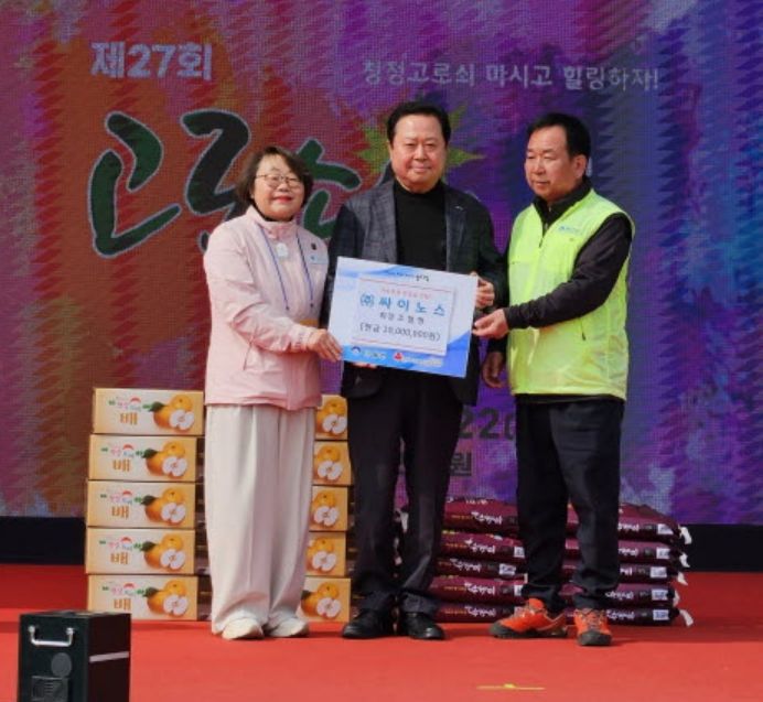한방통신사 신유철기자 기자 | 양평군 단월면은 지난 21일과 22일, 축제 기간 중 단월레포츠공원에서 열린 기념행사에서 ㈜싸이노스 조철형 회장이 이웃돕기 성금 1,000만 원을 전달했다고 밝혔다.
