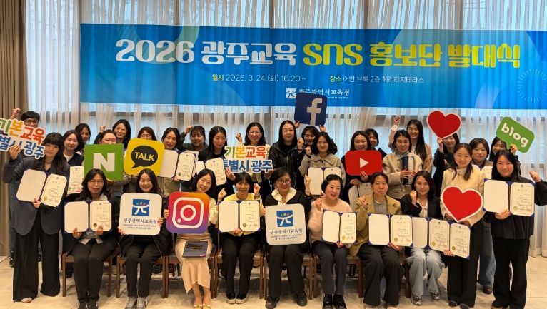 한방통신사 김성의 기자 | 광주시교육청은 24일 남구 어반브룩에서 학부모 29명, 교직원 6명 등 35명으로 구성된 ‘2026 광주교육 SNS 홍보단 출범식’을 갖고 본격 운영에 들어갔다.