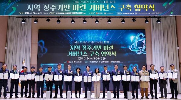 한방통신사 김성의 기자 | 광주시교육청과 광주시는 24일 광주AI교육원 대강당에서 이정선 광주시교육감, 김기숙 광주시 교육청년국장 등이 참석한 가운데 ‘고졸 인재와 지역의 미래를 함께, 지역 정주기반 마련 거버넌스 구축 협약식’을 개최했다.