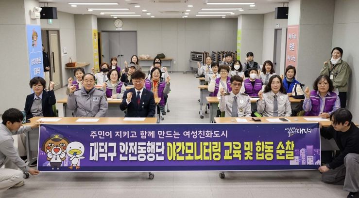 한방통신사 신태공 기자 | 대전 대덕구는 27일 주민 참여를 통한 안전한 마을 환경 조성을 위해 송촌동 일원에서 ‘안전동행단 야간모니터링 교육 및 합동순찰’을 실시했다고 밝혔다.