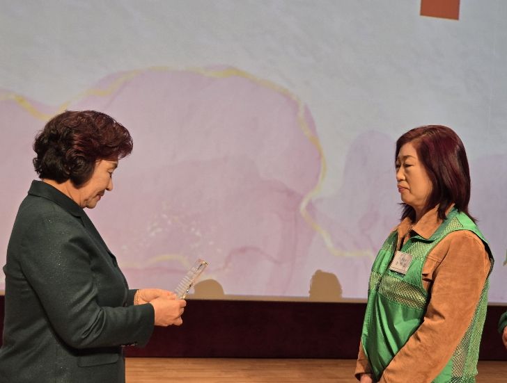 중앙회장상을 받은 송미경 회장은 우수사례 발표를 통해 서울에서의 직장 생활을 뒤로하고 간암 말기인 시아버님을 간병하기 위해 다섯 살, 네 살 어린 자녀들과 함께 연고 없는 시골로 내려왔던 삶의 전환점을 밝혔다. 1년여의 간병 기간 동안 ‘함께하는 돌봄’의 위로를 깨달은 그는, 전직 새마을부녀회장이었던 시어머니의 뒤를 이어 자연스럽게 새마을 활동에 발을 들이게 됐다.