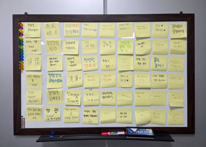 이번 캠페인은 공원사업과 직원들이 직접 청렴 다짐 문구를 메모지에 작성하고, 화이트보드에 부착하는 방식으로 진행됐다.
