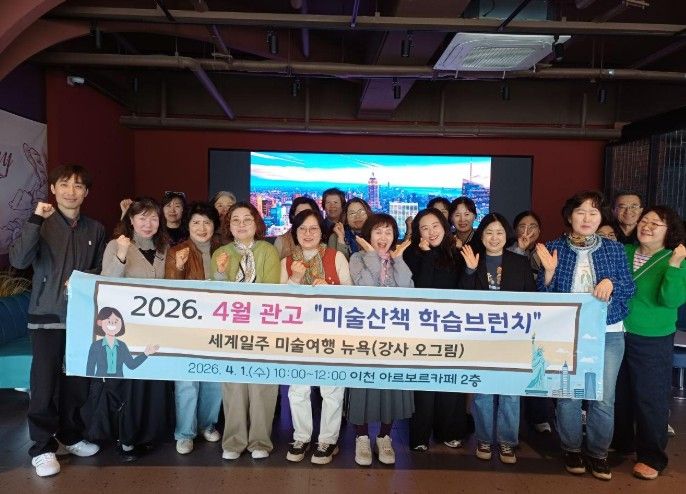 한방통신사 신유철기자 기자 | 이천시 관고동 주민자치회는 지난 1일, 뉴욕 미술관의 대표 명작들을 함께 보며 현대미술의 흐름과 미국 미술의 특징을 쉽게 이해할 수 있도록 구성한 ‘세계 일주 미술여행 뉴욕 편’을 운영했다고 밝혔다.