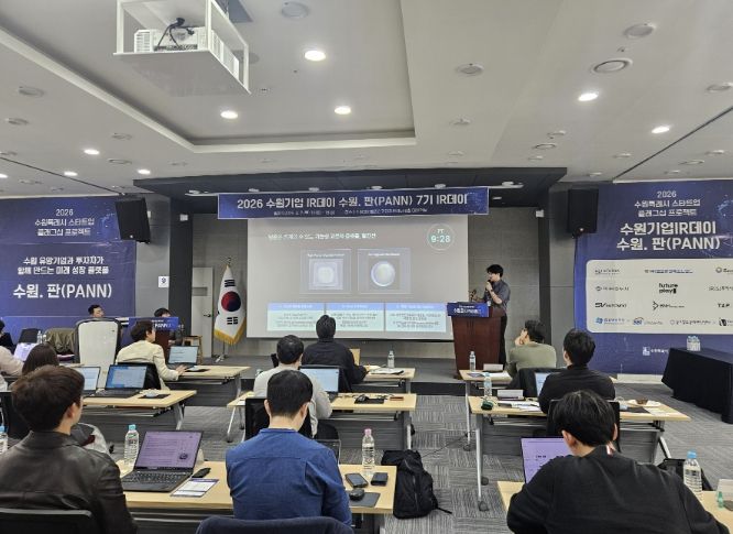 한방통신사 신유철기자 기자 | 수원특례시가 2일 수원벤처밸리2 기업지원센터 대회의실에서 2026 수원기업 아이알(IR)데이 수원.판(PANN) 7기를 개최했다.