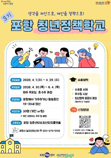 한방통신사 신유철기자 기자 | 포항시가 오는 4월 29일까지 ‘2026년 포항 청년정책학교’ 참여자를 모집한다.