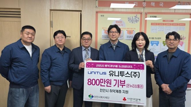 한방통신사 신태공 기자 | 천안시복지재단은 3일 유니투스㈜가 온누리상품권 800만 원을 기탁했다고 밝혔다.