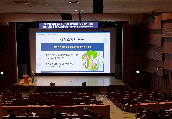 한방통신사 신유철기자 기자 | 충남도는 3일 도청 문예회관에서 중증장애인 생산품 우선구매 관련 공공기관의 인식 제고 및 구매 독려를 위한 ‘2026년 공공기관 중증장애인생산품 우선구매 교육’을 실시했다.