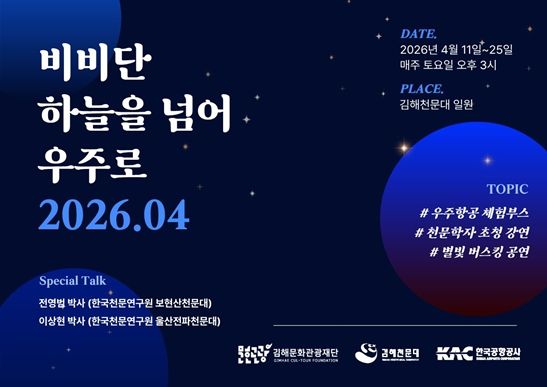행사는 김해천문대 일원에서 진행되며, ▲우주항공 체험부스 ▲천문학자 초청 강연 ▲별빛 버스킹 공연 등으로 구성된다.