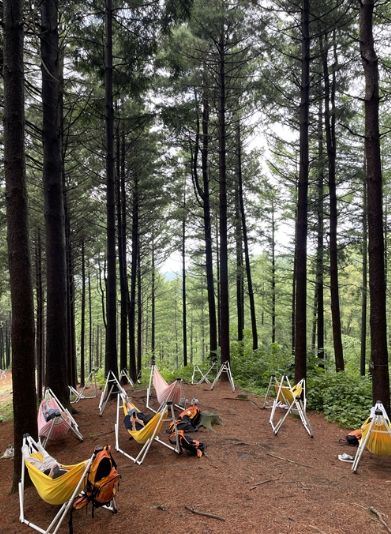 세부 프로그램으로는 ▲리듬 괄사 테라피 ▲밴드 스트레칭 ▲맨발숲길 걷기 등 신체 활력 증진 활동과 ▲해먹 체험 ▲싱잉볼 명상 ▲숲풍경 컬러링 등 오감을 자극하는 산림치유 코스가 다채롭게 구성됐다.