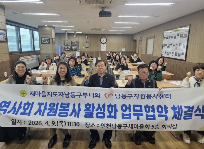 한방통신사 신유철기자 기자 | 인천시 남동구 새마을지도자남동구부녀회는 남동구자원봉사센터와 최근 인천남동구새마을회 5층 회의실에서 지역사회 자원봉사 활성화를 위한 업무협약(MOU)을 체결했다고 13일 밝혔다.