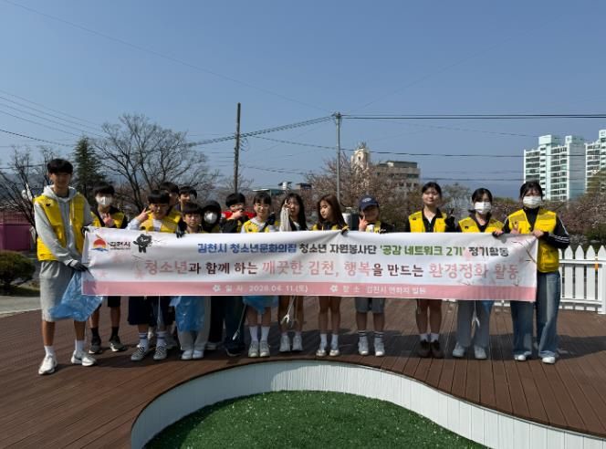 한방통신사 신유철기자 기자 | 김천시 청소년문화의집 청소년 자원봉사단은 2026년 4월 11일 김천 연화지 일대에서 환경정화 봉사활동을 진행했다.