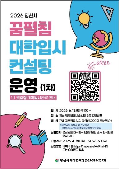 한방통신사 신유철기자 기자 | 양산시가 대입을 준비하는 학생들을 위하여 꿈펼침 대학입시컨설팅 사업을 추진한다.