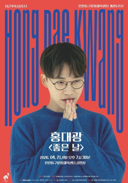 한방통신사 신유철기자 기자 | 인천동구문화체육센터는 업무에 지친 직장인을 대상으로 오는 21일 오후 7시30분 홍대광의 '좋은 날' 공연을 개최한다고 밝혔다.