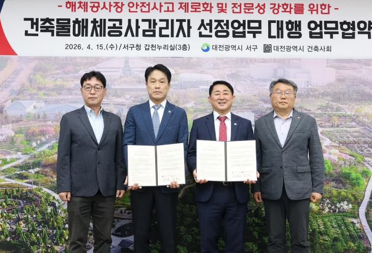 협약식에는 서철모 서구청장과 관계 공무원, 대전광역시건축사회 관계자 등이 참석해 안전한 해체공사장 조성을 위한 상호 협력 의지를 확인했다.