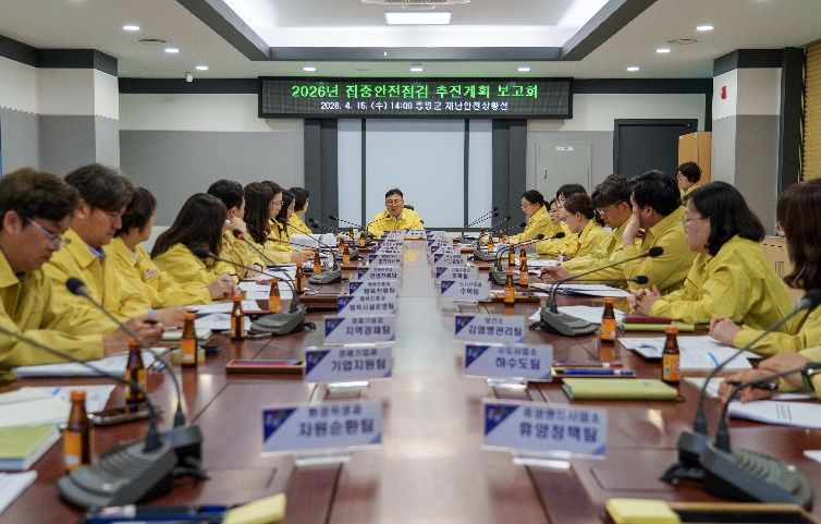 한방통신사 권영분기자 기자 | 충북 증평군은 15일 재난안전상황실에서 김두환 부군수 주재로 ‘2026년 집중안전점검 추진계획 보고회’를 열고, 시설별 점검계획과 중점 추진사항을 공유했다.