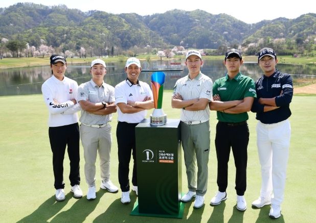 이날 포토콜을 위해 주최사 DB손해보험 소속 문도엽(35), 장희민(24), 김홍택(33)을 비롯해 ‘디펜딩 챔피언’ 김백준(25), 2025시즌 ‘제네시스 대상’ 옥태훈(28.금강주택), 지난해 ‘DB손해보험 영건스 매치플레이 Presented by 캘러웨이’ 우승자 자격으로 이번 대회에 출전하는 아마추어 손제이(16.동래고등학교부설 방송통신고등학교)까지 총 6명의 선수가 18번홀 그린에 모였다.