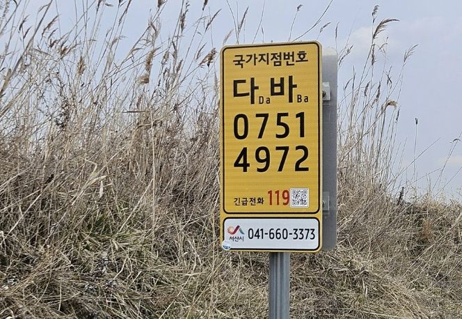 국가지점번호판은 산악·해안 등 주소 확인이 어려운 지역에서 위치를 쉽고 정확히 전달할 수 있도록 문자 2자리와 숫자 8자리로 구성된 위치표시 체계다.