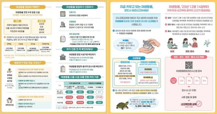 또한 지난해 12월 13일 이전부터 사육하고 있는 경우, 오는 6월 13일까지 ‘야생동물종합관리시스템 ’보관 신고를 해야한다.