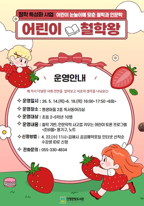 ‘어린이 철학왕’ 참가 신청은 오는 22일 오전 11시부터 김해시 공공예약포털에서 할 수 있다.