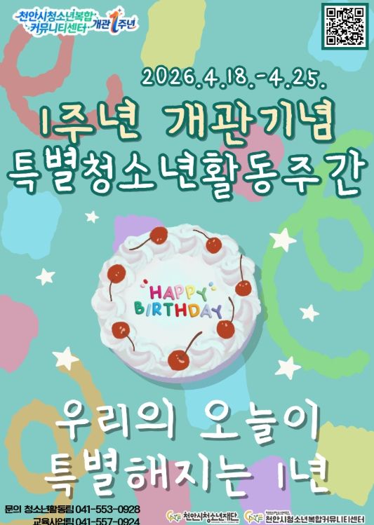 김응일 천안시청소년재단 대표이사 직무대행은 “지난 1년간 보내주신 성원에 보답하고자 이번 행사를 마련했다”며 “청소년이 주체적으로 참여하고 성장하는 핵심 공간으로 자리매김하도록 지속적으로 노력하겠다”고 말했다.