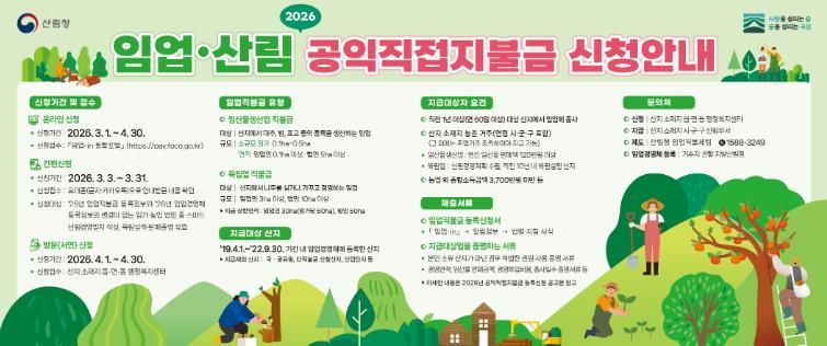 한방통신사 신다은기자 기자 | 전라남도는 임업의 공익기능 증진과 임업인의 안정적 소득 보전을 위해 2026년 임업·산림 공익직접지불금 신청을 30일까지 접수한다고 밝혔다.
