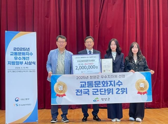 한방통신사 신태공 기자 | 청양군이 한국교통안전공단 주관 ‘2025년 교통문화지수 실태조사’에서 전국 80개 군 지역 중 2위(A등급)를 차지하며 명실상부한 교통안전 선도 도시로 우뚝 섰다.