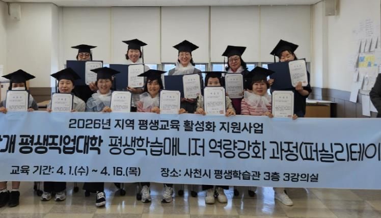 한방통신사 신유철기자 기자 | 사천시 평생학습관은 지역 평생교육 현장에서 활동할 전문 인력을 양성하기 위해 운영한 '평생학습매니저 역량강화 과정'을 성공적으로 마무리했다고 17일 밝혔다.