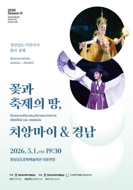 한방통신사 신유철기자 기자 | 경상남도문화예술회관은 5월 1일 오후 7시 30분 대공연장에서 '경상남도-치앙마이 춤의 동행 ‘꽃과 축제의 땅, 치앙마이 & 경남’' 공연을 개최한다고 밝혔다.