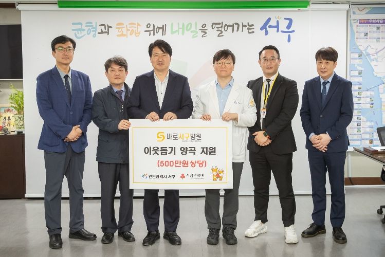 한방통신사 신유철기자 기자 | 인천 서구는 지난 16일 바로서구병원(대표원장 유범석·김훈철)으로부터 취약계층 지원을 위한 양곡(500만 원 상당)을 전달받았다고 밝혔다.