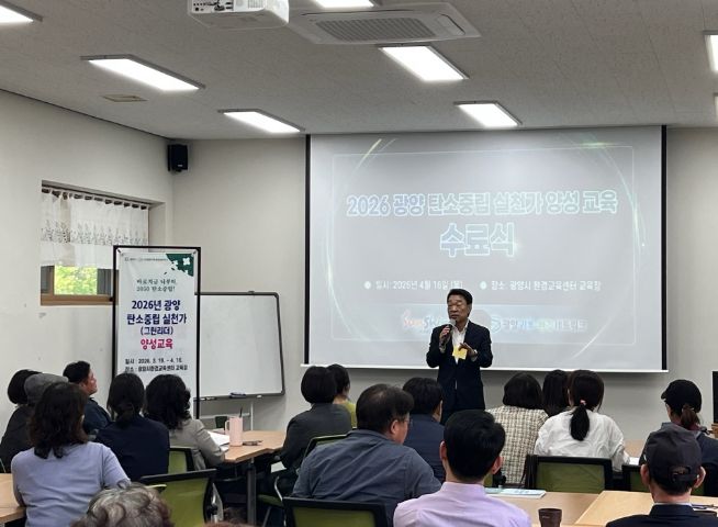 한방통신사 신다은기자 기자 | 광양시와 (사)광양기후·환경네트워크는 4월 16일 광양시 환경교육센터에서 ‘2026년 탄소중립 실천가 양성교육’ 수료식을 열고 41명의 새로운 탄소중립 실천가를 배출했다고 밝혔다.