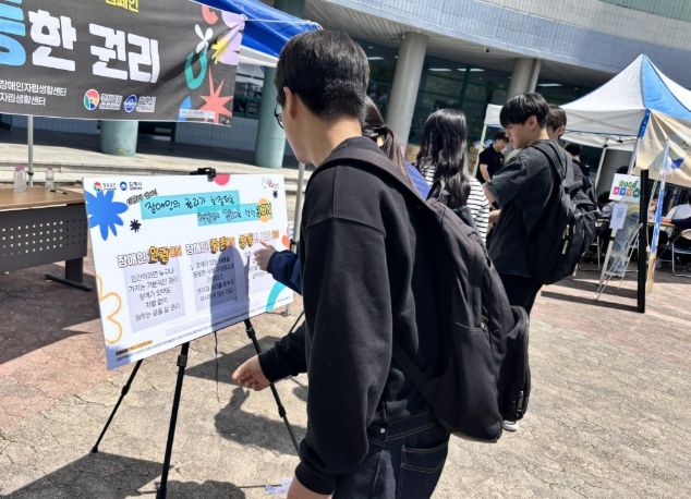 한방통신사 신유철기자 기자 | (재)김해시복지재단 김해시장애인종합복지관(관장 류재복)은 김해장애인복지기관네트워크 합동으로 지난 13일부터 15일까지 3일간 지역 내 대학생들을 대상으로 장애인식개선 캠페인 ‘동정이 아닌, 동등한 권리’을 진행했다.