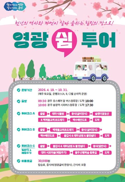 한방통신사 신다은기자 기자 | 영광군은 4월 18일부터 10월 31일까지(7∼8월 폭염으로 제외) 토요 감성 힐링 여행‘2026년 영광 쉼 투어’를 매주 토요일 운영 한다고 밝혔다.