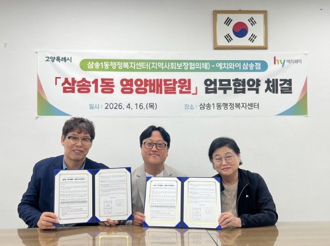 한방통신사 신유철기자 기자 | 고양특례시 삼송1동은 지난 16일 취약계층의 건강과 안부를 동시에 살피는 ‘영양배달원’사업 추진을 위해 지역사회보장협의체와 ㈜에치와이 고양 삼송지점이 업무협약을 체결했다.