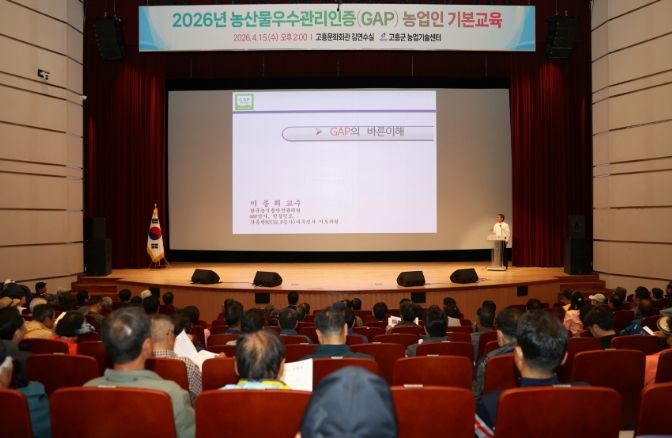 한방통신사 신다은기자 기자 | 고흥군은 지난 15일 고흥문화회관 김연수실에서 지역 농업인 344명이 참석한 가운데 2026년 농산물우수관리(GAP) 인증 농업인 기본교육을 실시했다고 밝혔다.