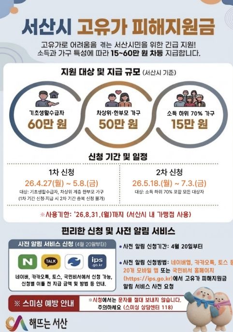 시 관계자는 “고유가 피해 지원금의 신청부터 지급까지 불편이 없도록 안내와 홍보, 현장 대응에 최선을 다하겠다”라고 말했다.