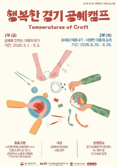 한방통신사 신유철기자 기자 | 한국도자재단이 오는 5월 1일부터 경기공예창작지원센터(여주) 일원에서 체험·전시·이벤트를 결합한 참여형 프로그램 ‘2026 행복한 경기 공예 캠프’를 개최한다.