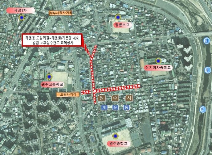한방통신사 양호선기자 기자 | 원주시상하수도사업소는 깨끗한 수돗물 공급을 위해 5월부터 ‘개운동 도말리길-개운로 일원 노후상수관 교체공사’를 추진한다.