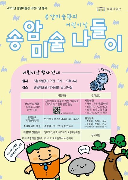 시 송암미술관 관계자는 “어린이들과 가족들이 '송암 미술 나들이'의 여러 체험을 함께 즐기면서 송암미술관에서 즐거운 추억을 만들어 가길 바란다”고 말했다.