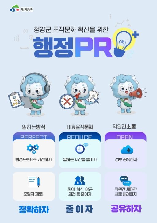 한편, 군은 ‘행정PRO+(플러스) 운동’과 ‘청렴 Hi-5 운동’을 연계해 존중·소통·책임 중심의 조직문화를 확산하고, 불필요한 업무와 불합리한 관행을 줄여 효율적이고 청렴한 행정체계를 구축해나가고 있다.