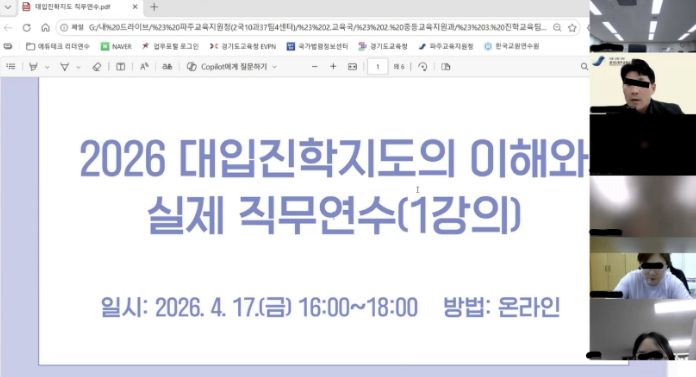 한방통신사 신유철기자 기자 | 경기도파주교육지원청은 급변하는 대입 환경에 발맞추어 교원의 대입진학지도 전문성을 높이고 학생 맞춤형 진학 교육을 실현하기 위하여 '2026 대입진학지도의 이해와 실제 직무연수'를 운영한다.
