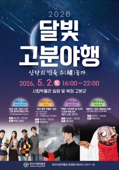양산시립박물관에서 알차게 준비한‘2026 달빛 고분 야행(夜行)’에 대한 자세한 정보는 양산시립박물관 홈페이지 또는 운영팀으로 문의하면 된다.