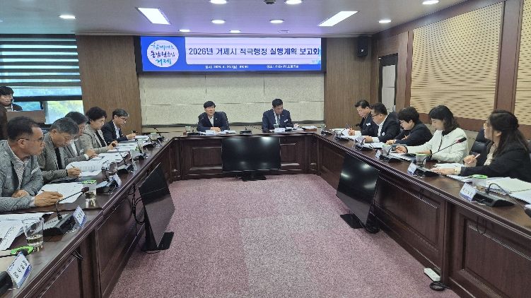 한방통신사 신유철기자 기자 | 거제시는 20일 시청 소회의실에서 조직 내 적극행정 문화를 확산하고, 실천 의지를 다지기 위해 ‘2026년 거제시 적극행정 실행계획 보고회’를 개최했다.