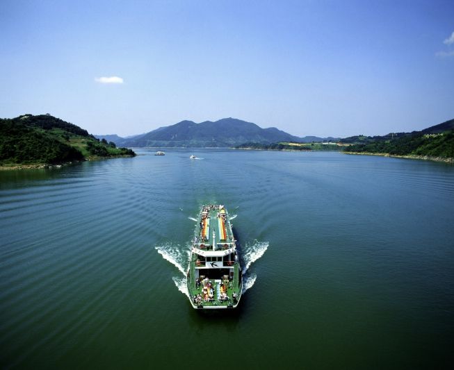 충주댐 선착장에서 출발하는 유람선은 충주호의 비경을 가장 가까이서 감상할 수 있는 필수 코스다.