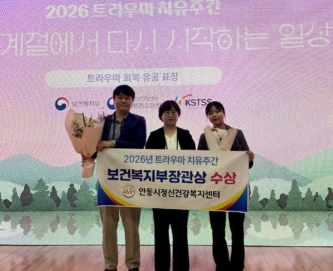 한방통신사 신유철기자 기자 | 안동시정신건강복지센터는 20일 국립정신건강센터에서 열린 보건복지부 주최 ‘2026년 트라우마 치유주간’ 시상식에서, 산불 재난 경험자의 심리 회복을 위해 헌신한 공로를 인정받아 보건복지부 장관 표창을 수상했다고 밝혔다.