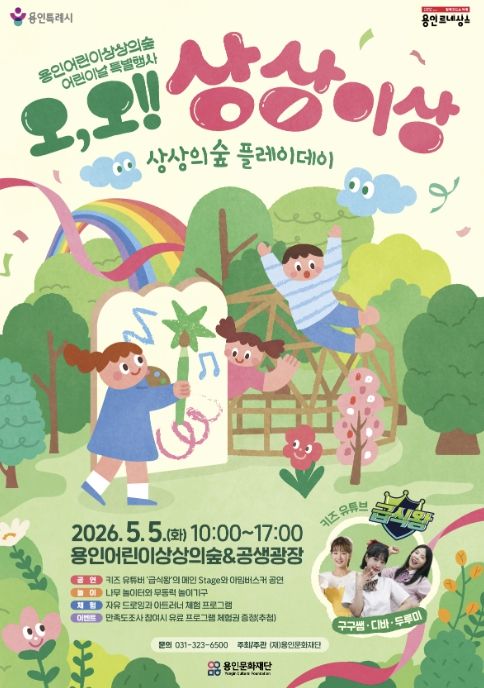 한방통신사 신유철기자 기자 | 용인문화재단은 오는 5월 5일 어린이날을 맞아 용인어린이상상의숲에서 2026년 어린이날 특별행사 ‘오, 오! 상상이상’을 개최한다고 밝혔다.