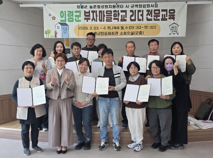 한방통신사 신유철기자 기자 | 의령군은 지난 3월부터 추진해 온 ‘2026년 부자마을학교 리더 전문교육’을 마무리하고 12명의 수료생을 배출했다고 밝혔다.